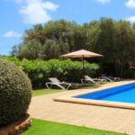 Auch traumhaft ist der Außenbereich mit dem großen Pool von 8 x 4 m, der zu einer Erfrischung einlädt. Anschließend genießen Sie das Nichtstun auf der Sonnenliege umgeben von der üppigen Vegetation mit altem Baubestand. Da auf Mallorca insbesondere im Sommer das Leben draußen stattfindet, gibt es einen tollen Grillplatz mit großem Esstisch und Blick auf den Pool. Dieser Platz eignet sich auch für ein relaxtes Frühstück.