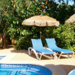Der großzügige Pool (10 x 6 m) verfügt über drei Stufen, damit Sie bequem ins Wasser gehen können. Die kleine Ausbuchtung am Ende der Stufen ist ideal, um mit einem Kleinkind zu spielen. Im tieferen Bereich steigen die Kinder ganz schnell über die Leiter aus dem Wasser, um auch wieder ganz schnell hinein zu springen. Schauen Sie das Treiben der Kinder zu, während Sie sich auf einer der Sonnenliegen ausruhen und dem Zwitschern der Vögel lauschen. Palmen, Kiefer und Sonnenschirme spenden an sehr heißen Sommertagen angenehmen natürlichen Schatten. Can Crestall ist registriert unter VT/1725 und mit der Número Único unter ESFCTU000007008000218428000000000000000000000VT/17254.